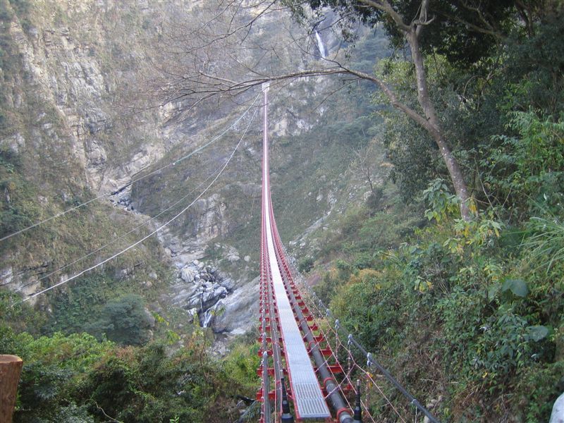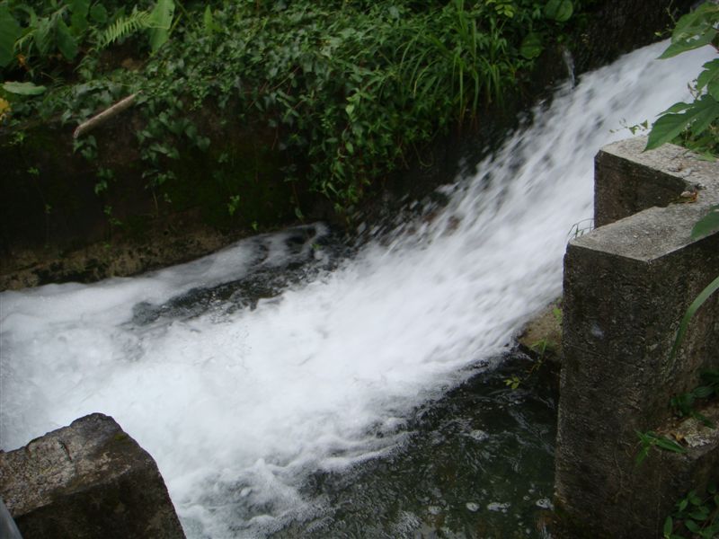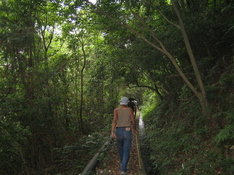 一路上都是,石子路,渠道有著清澈的溪水,也有坡度很高的階梯,來到路途的一半中,有一座很漂亮的吊橋,不過這吊橋不是給人走的,是給山上的山泉水走的,主要是提供給山下人民的用水,從照片看過去是很長的吊橋,不知道當初建立吊橋的那些英雄是用什麼方法達成這麼艱鉅的任務,只能謝謝他們為山下的居民帶來生活的便利,走過這個吊橋,就剩一半的路程囉。