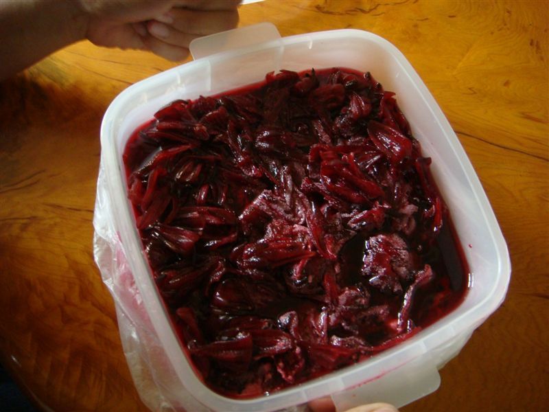 大夥將行李、烤肉用具、火鍋材料卸下車後,就坐在民宿一樓合室旁的大木桌,吃著阿貿姑姑做的洛神花蜜餞,又喝著吳大哥庭院重的檸檬香茅所泡的茶,兩者真是絕配阿,想吃的人請找阿貿訂購。