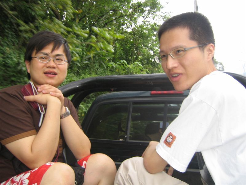 坐著聊了一下,就準備出發到第一個目的地-雙龍瀑布,討論了一下子決定所有人坐著吳大哥的吉普車,前往瀑布囉,瀑布所在之地有個部落,雙龍部落。