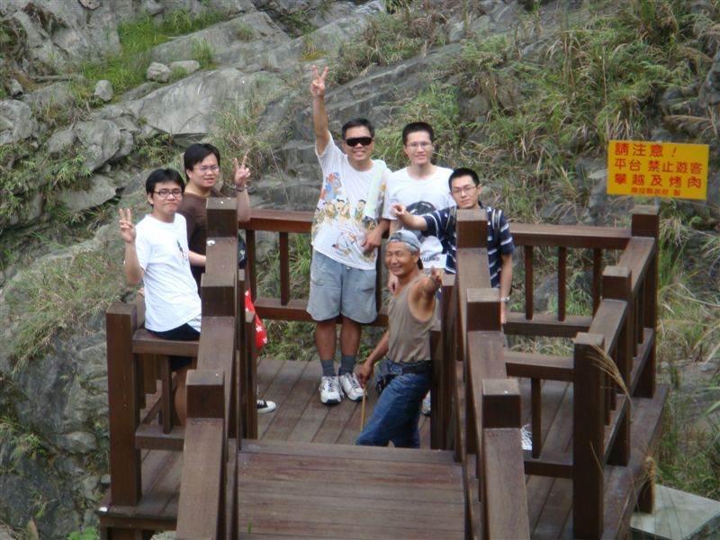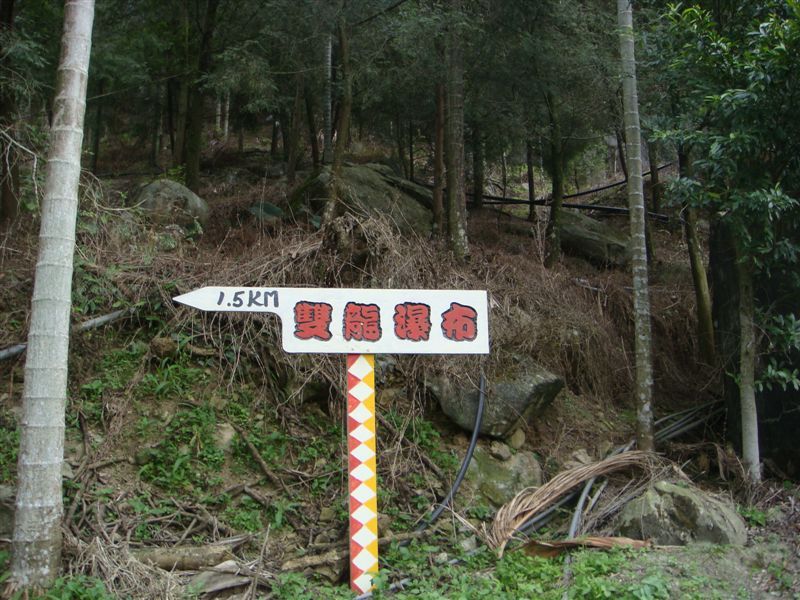 車子開到,雙龍唯一的警察局,於是我們下車,徒步前往雙龍瀑布的入口,吳大哥帶我們走的是日本時代做水渠就有的小路,明明看著入口牌子寫著是1.5公里,走起來應該不只,也許立牌的人,只計算了平行的路程,沒有計算到爬坡的高度= = ,吳大哥說這條路是比較不好走的路,另有一條比較平坦的路,既然來了還是給他挑戰一下囉~go!!!