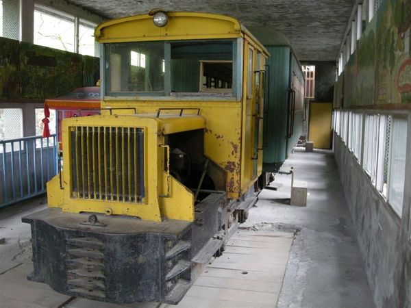 出了禮堂,繼續往其他地方逛逛,沿途又看到了一些一怪的東西,就像這張相片,有著齒輪,最外面那圈反而像輪子,可是輪子卻沒有凹槽可以與鐵軌接合,總之它一定有什麼作用,不管了繼續走囉。