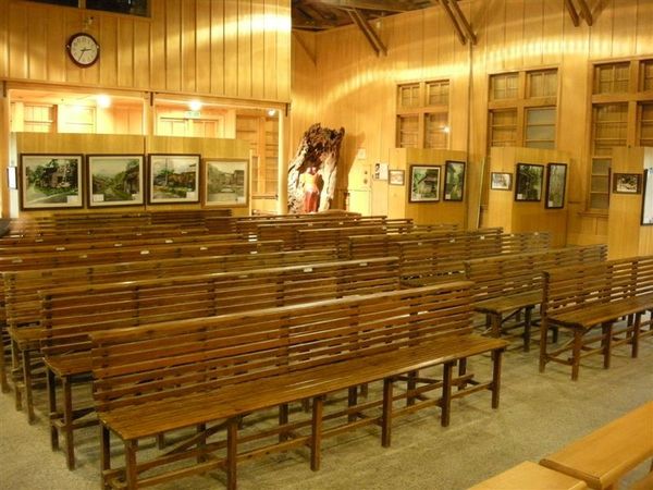 走著走著看到了木造的禮堂-中山堂,這個禮堂應該是辦活動及展覽用的,在禮堂的後面還看到了不知幾零年代的放映機,原來早期放映影片還需要這麼大台的機器才能達成,比較現在在電影院,只需透過單槍投影機,將影像打至布幕就好,時代進步,所以體積越作越小,看完了堂內展示的照片,於是詢問了中山堂的管理人員,才知道每週在中山堂內會放映2~3場的免費電影,哎呀~我們來的真不是時候,只好等待下次有機會再來欣賞不一樣的電影感覺囉。