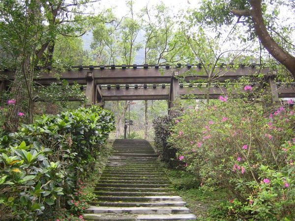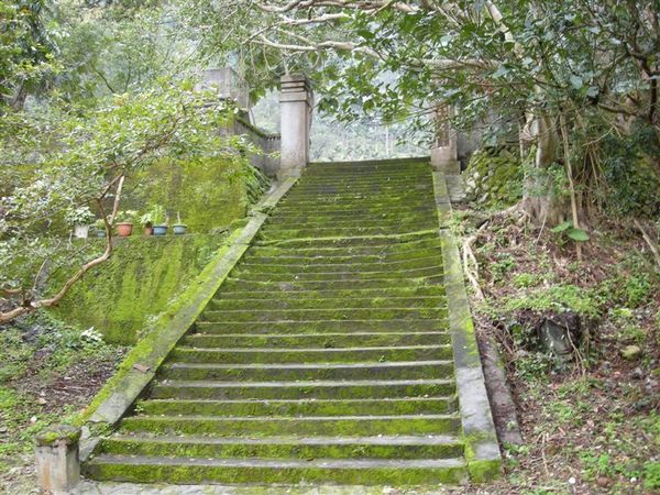 接著又看到了佈滿青苔的階梯,走上一看,有個門口,而門口之後卻是一片平地什麼也沒有,仔細往門柱一看,原來上面這片平地,就是以前提供給伐木員工子女就讀的森榮國小,如今已不復見,只能想像那時候的小孩,休息時間或下課都是與這片廣大的森林為伍,享受這片大自然帶給他們最原始的快樂吧~