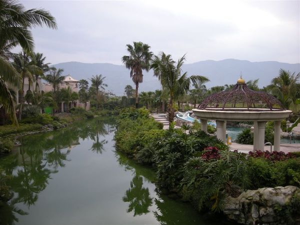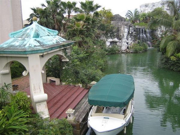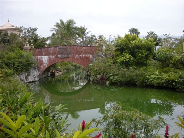 隔天早上,我很早就醒來了,應該說失眠吧,晚上也有人在走動,我猜那個人就是Max,果然沒錯,他也失眠了,倒是另外兩位真羨幕他們可以一下子就躺平,進入夢鄉,起來之後我就去浴室又沖了個熱水澡,提振提振精神,陸陸續續大夥也起床盥洗,都好了,就前往飯店的早餐地點,根本就像是buffet,應有盡有看你要西式的還是中式的,總之能滿足你所有的需求,飽餐一頓之後,前往碼頭,搭船欣賞這美麗的度假村風景,沿途經過許多橋以及人造景觀,雖然是人造真的是很漂亮,船長還跟我們說理想大地等於一個永和市的大小,天阿,果然很大,沿途風景更是美不勝收,無法一一在此介紹,請至相簿欣賞~