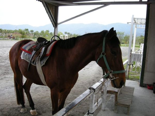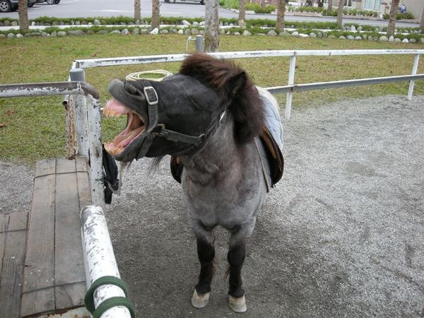 坐船觀賞完理想大地三大島之後,我們前往馬場,馬場內有一匹迷你馬跟高大的駿馬,這隻俊馬很可愛唷,因為馬場外有放置好的牧草,一捆忘記多少錢了,當我們眼神飄向捆好的牧草,這匹馬竟然像我們點頭,要我們買草給他吃,呵呵,真是有靈性的一匹馬,於是我們坳不過那誠懇的點頭與眼神,就花錢買了一捆,牠還真的相當高興。