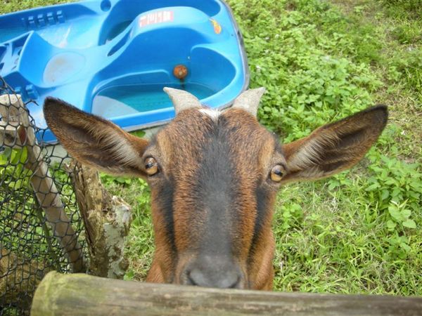 在馬場的另一頭,看到了一支可愛的山羊,仔細看她的眼睛唷,真的很可愛。