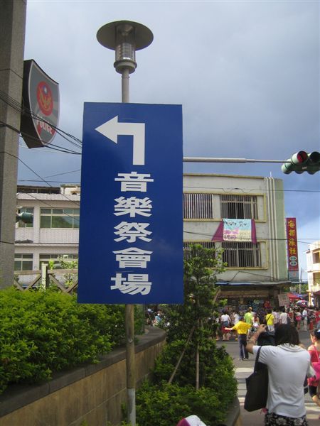 從台北車站發車到福隆車站花了快一個半小時,總算是到了,車門開了,又是一陣擁擠,連繳票出去,也是要排隊,出來後總算看到傳說中的福隆火車站的全貌,由於人太多,也帶來了垃圾,拿起相機,只好往車站門口上拍攝,因為下面實在是慘不忍睹,車站門口都是販賣福隆便當的店家,一個才50元,由於排隊的 人太多,大伙決定先前往音樂祭的會場,也就是福隆海水浴場,走著走著就看到了指示牌大大的寫者"音樂祭會場",前往海水浴場囉,進去之前大伙先去我們的好朋友7-11買足解渴飲品,一路上都是俊男美女穿著海灘褲、比基尼。