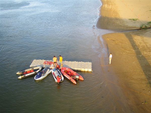 岸邊簡易碼頭與機動救援海上摩托車與救生艇