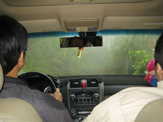 辛苦的司機阿貿一直迷路,開到了一處荒煙漫草的地方,從車內看出還是看不出前路在哪,於是阿貿下車前往查看,果然又迷路了,在這狹小的路上,本來要一路八庫,但是也不好退,只找慢慢轉出去,繼續尋找釣點~找著找著還是沒找到,看到了一個老阿伯,於是前往詢問,果真問到了答案,找了一處停好車,換好溯溪鞋,背好裝備,出發前往阿貿所說的釣點。